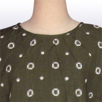 | 割ぽう着 胸のギャザー入り替え、後ろもギャザー切り替え被り型の割ぽう着。 |