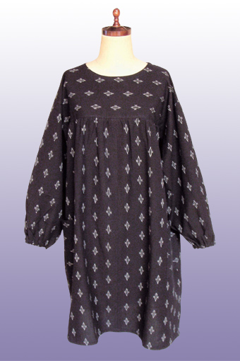 | 半袖ワンピース 天保銭柄の平織りのワンピース。 |